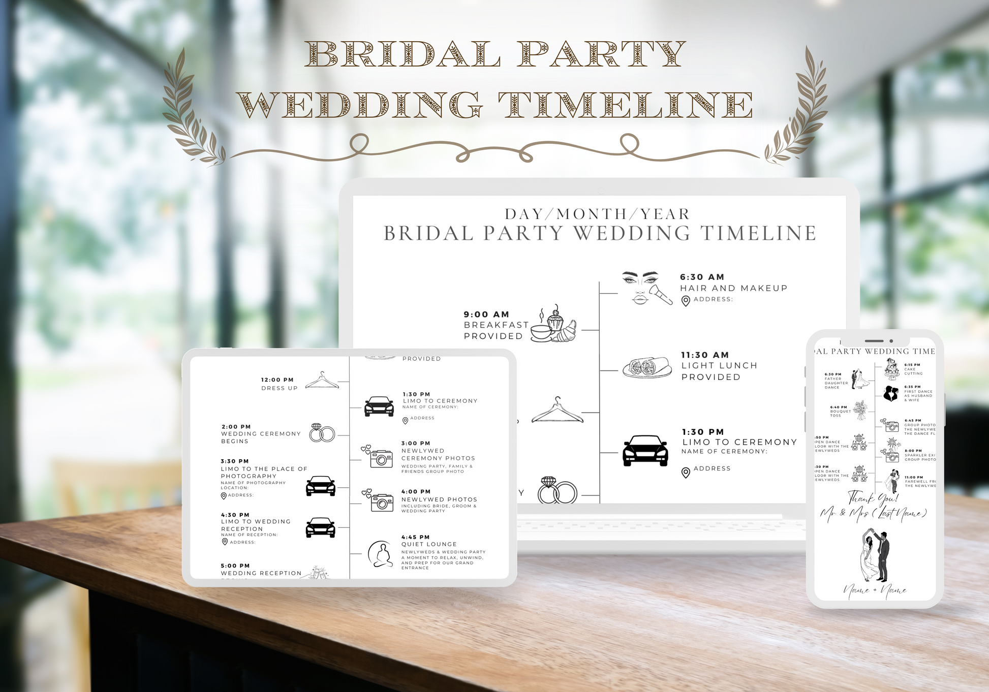 Bridal Party Wedding Timeline Digital Template